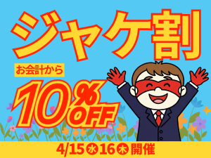 ジャケット着用でのご来店で、なんとお会計が10%OFFになる「ジャケ割」を2日間限定で開催いたします。